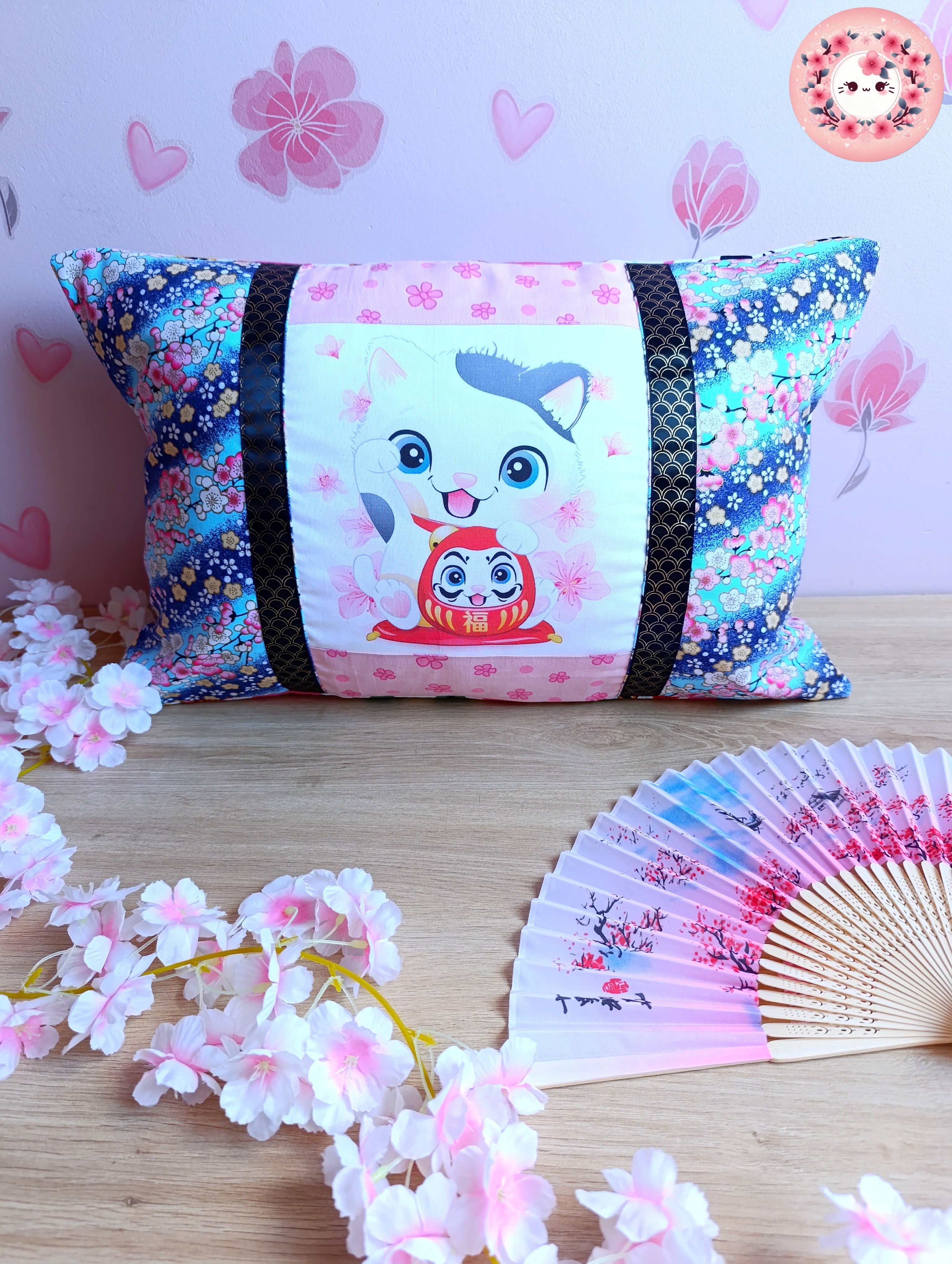 HOUSSE DE COUSSIN - MANEKI NEKO - "Ao"