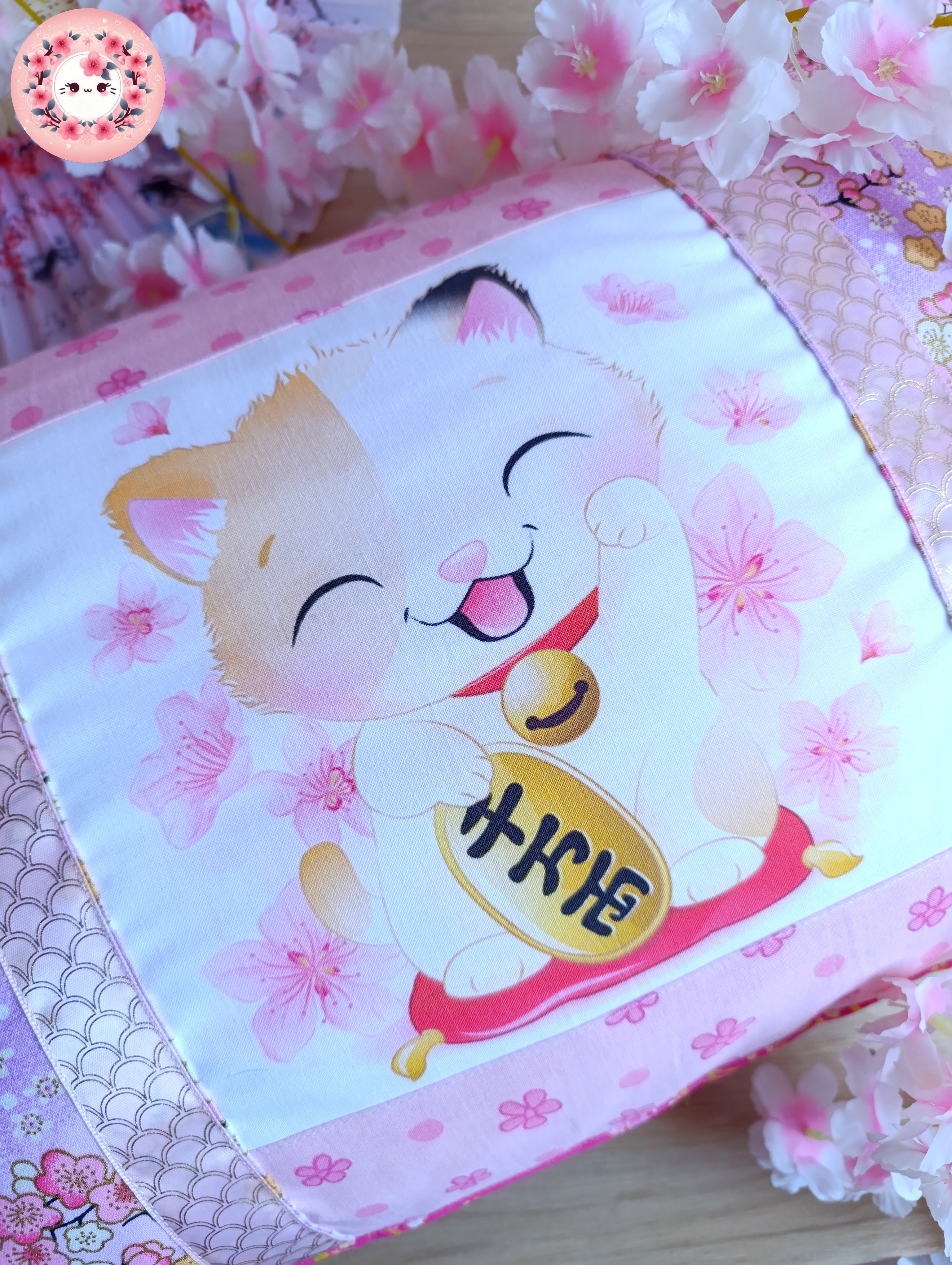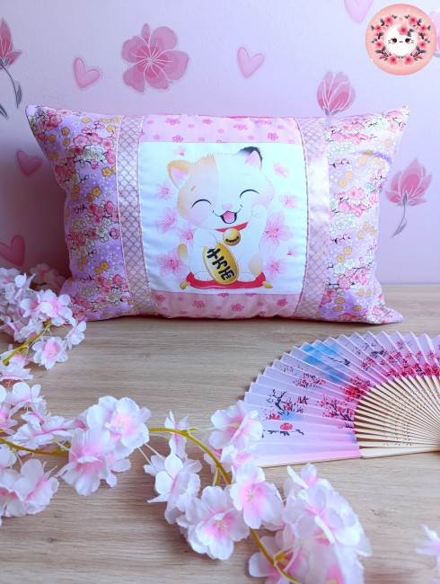 HOUSSE DE COUSSIN - MANEKI NEKO - "Murasaki"