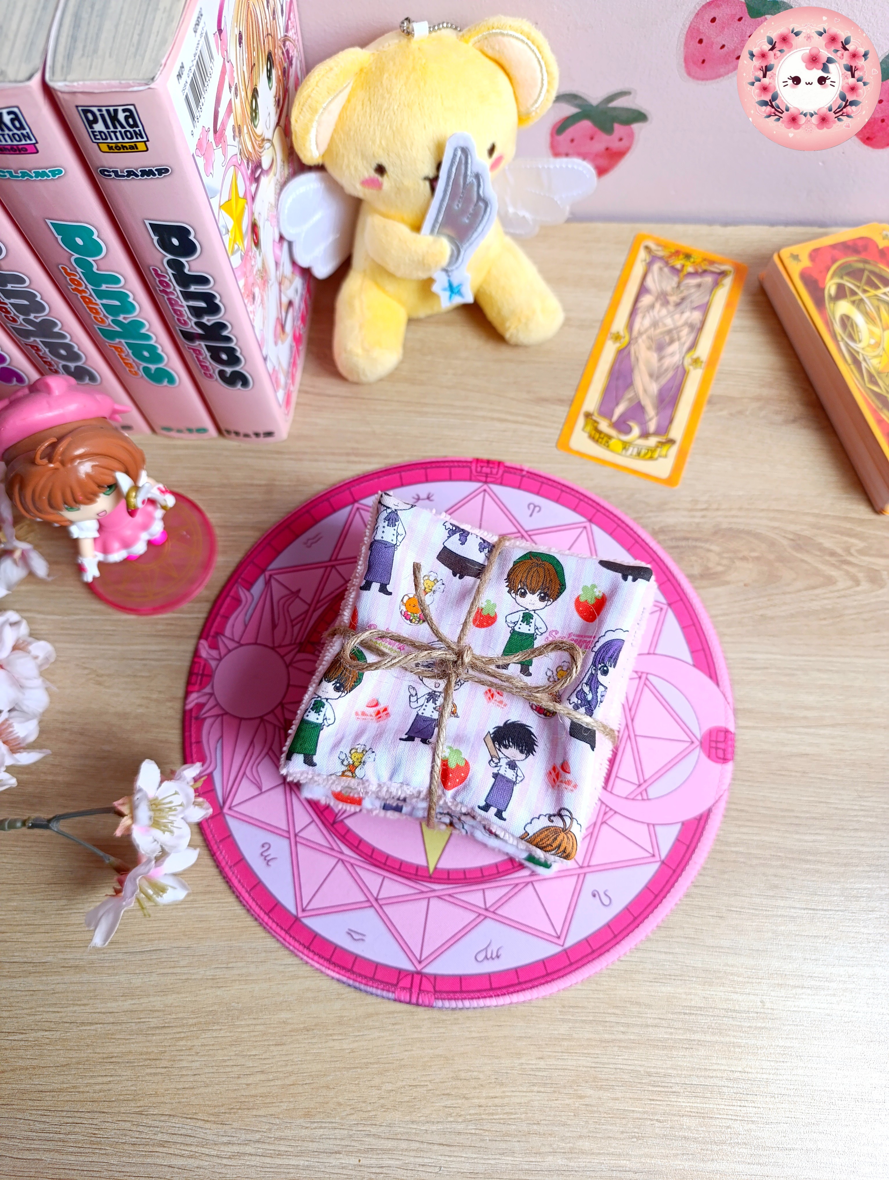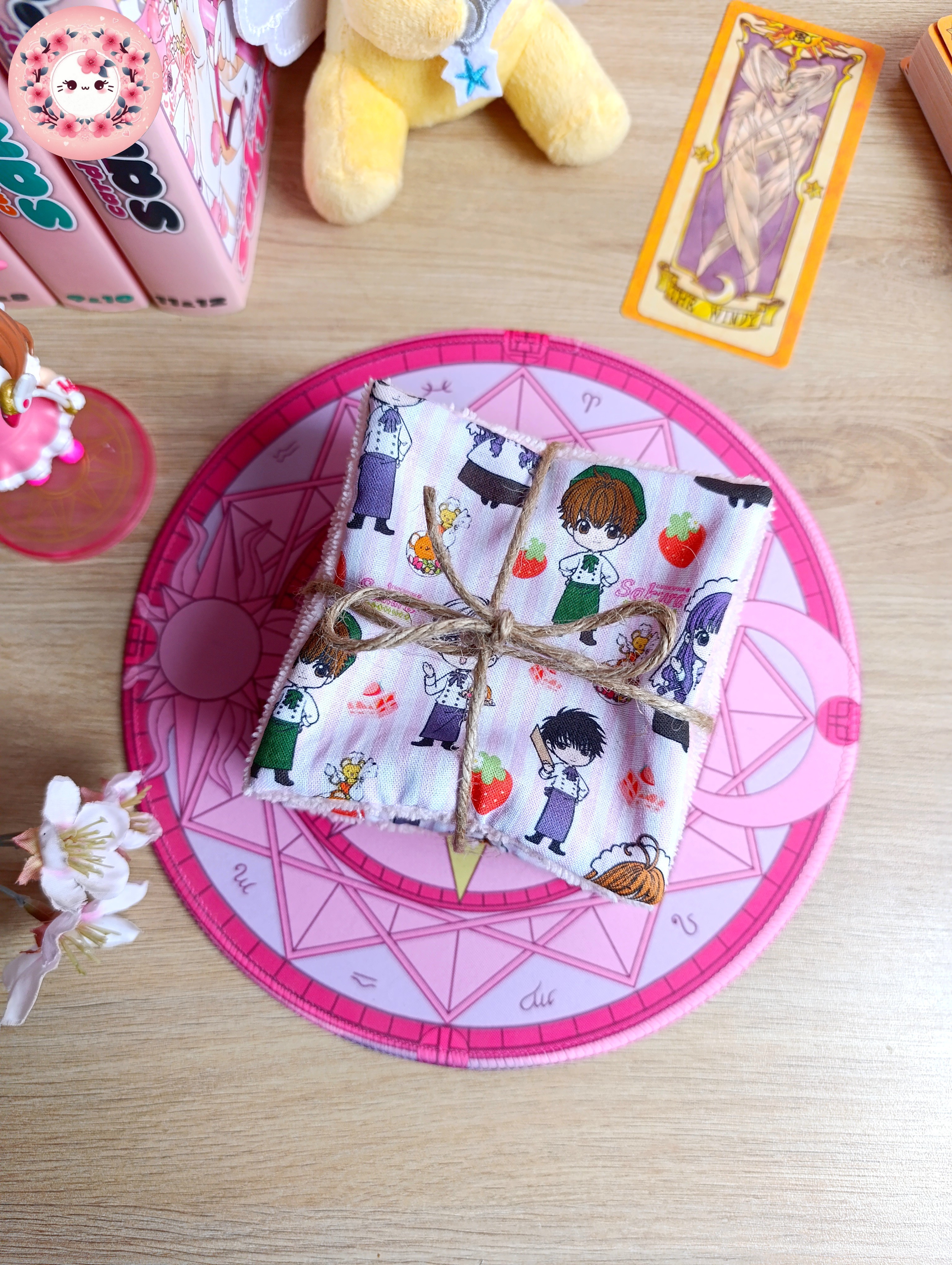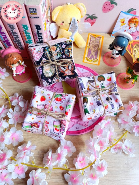 Lot de 7 lingettes lavables Carrées uni face - SAKURA - "Les personnages"