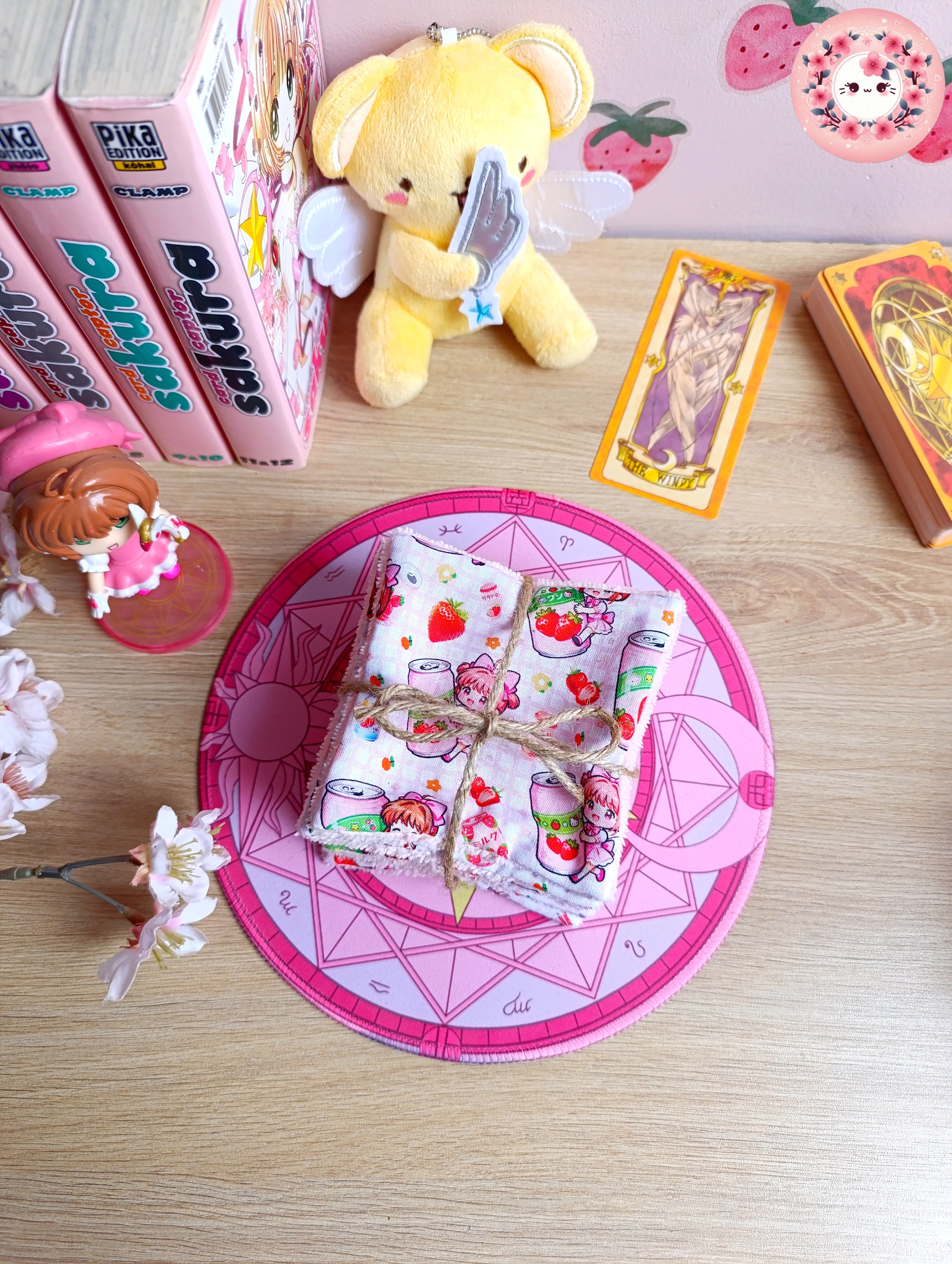 Lot de 7 lingettes lavables Carrées uni face - SAKURA - "Kawaii Sakura"